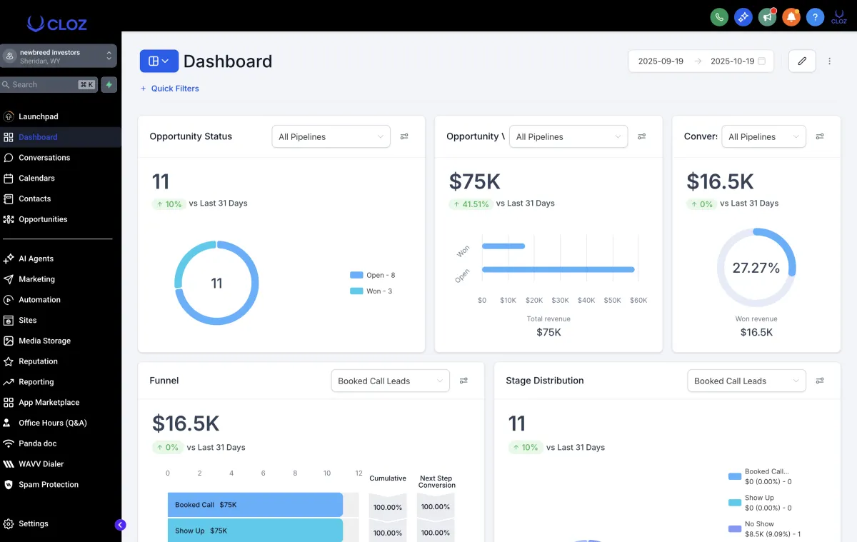 Cloz is an all-in-one sales and marketing platform designed to help businesses automate lead generation, follow-up, CRM management, and client communication through email, SMS, funnels, and more—all in one dashboard.